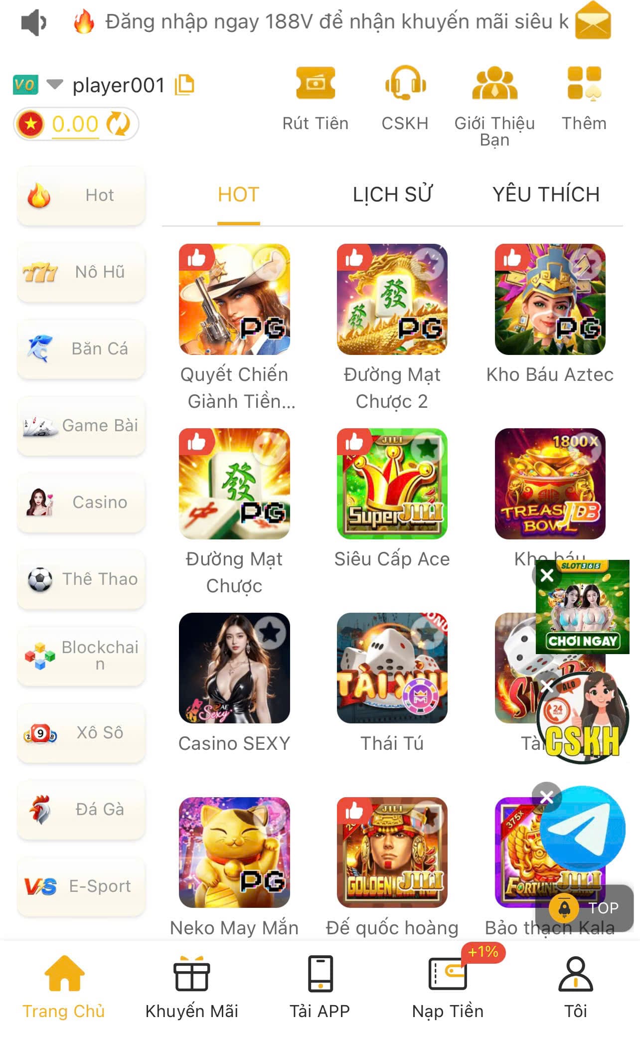 Các sảnh trò chơi Blockchain, Bắn cá, Slot tại nhà cái 188vv.com có sự kiện đua TOP hàng tuần. Mọi thành viên đều có thể tham gia, phần thưởng TOP 1 hàng tuần giá trị lên tới 88888K.